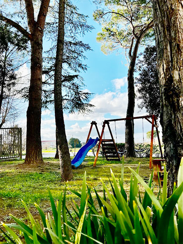 All’esterno della struttura troverete un ampio giardino dove è presente un zona bimbi ed un parcheggio dov’è possibile parcheggiare auto e pullman.