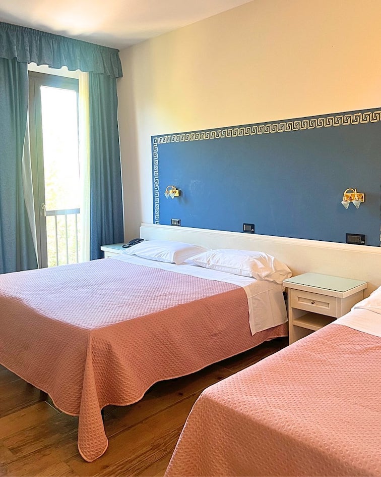 Qui troverete un letto matrimoniale o due letti singoli, a seconda delle vostre esigenze, e potrete godere di tutte le comodità di cui avete bisogno, come il bagno privato, la TV e l’aria condizionata. Inoltre, potrete trascorrere del tempo insieme in questo ambiente rilassante e confortevole, creando dei momenti indimenticabili.